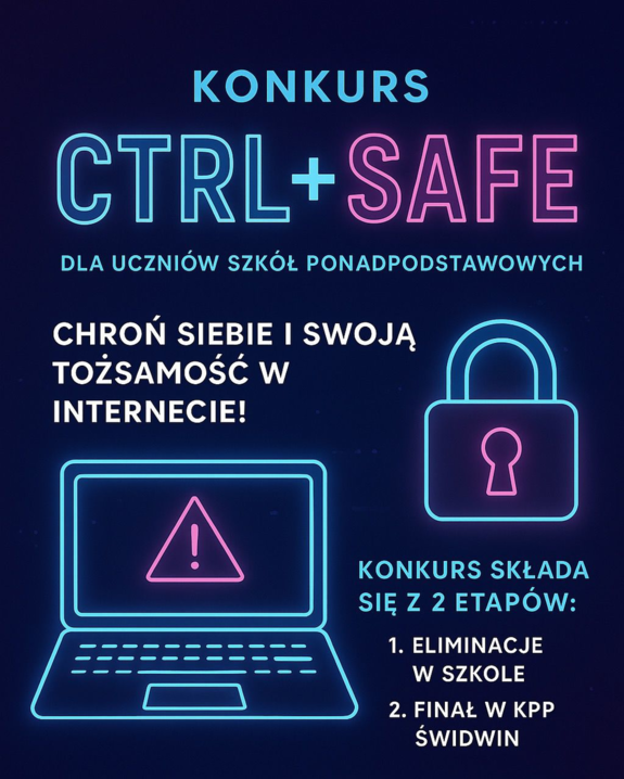Dzisiaj, 30 stycznia 2026 roku, w siedzibie Komendy Powiatowej Policji w Świdwinie odbył się finał konkursu wiedzy o cyberbezpieczeństwie Ctrl+Safe. W konkursie wzięli udział uczniowie wszystkich szkół ponadpodstawowych z terenu powiatu świdwińskiego.