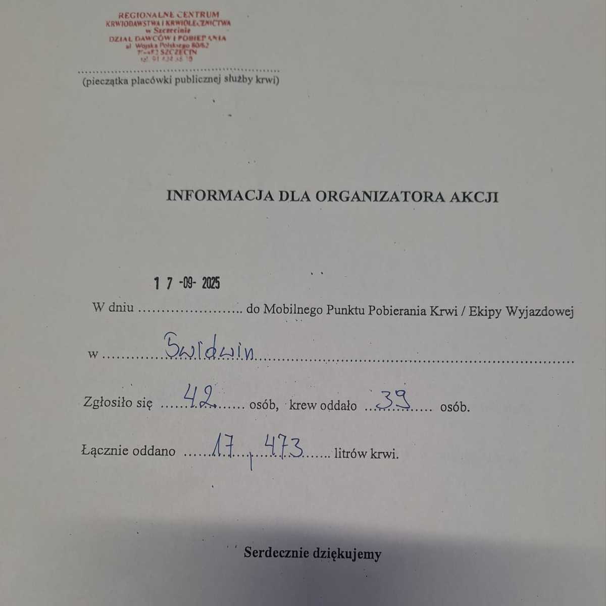 Niech ten wynik będzie dla nas wszystkich powodem do dumy, ale i motywacją, by wracać na kolejne akcje krwiodawstwa. Bo dobro wraca – zawsze!