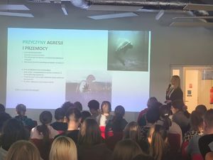 Temat spotkania „Bezpieczne funkcjonowanie w otoczeniu szkolnym, w przestrzeni publicznej i online” był wyborem wynikającym z realnych potrzeb uczniów oraz wyzwań, z jakimi spotykają się oni na codzień. Celem spotkania było zwiększenie świadomości zagrożeń, kształtowanie odpowiednich postaw oraz przekazanie praktycznych zasad, które pomagają dbać o własne bezpieczeństwo. Omówiono sposoby bezpiecznego zachowania w szkole, w kontaktach z rówieśnikami i osobami dorosłymi. Dyrektor MOW w Rzepczynie ks. Bartłomiej Przybylski podzielił się swoim wieloletnim doświadczeniem zawodowym pracy z młodzieżą zagrożoną demoralizacją oraz dogłębną znajomością problematyki wychowawczej i resocjalizacyjnej. Pani psycholog Katarzyna Mazur ze względu na swoje kompetencje zawodowe w zakresie diagnozy, wsparcia psychologicznego oraz profilaktyki problemów emocjonalnych dzieci i młodzieży podzieliła się wiedzą w zakresie mechanizmów hejtu rówieśniczego, skutków dla zdrowia psychicznego młodych ludzi oraz skutecznych form reagowania i zapobiegania temu zjawisku. Przedstawiciele Policji poruszyli zagadnienia związane z konsekwencjami prawnymi, gdzie nieletni odpowiada za demoralizację, czyny karalne, poważne przestępstwa. Odpowiedzialność nie polega głównie na „karaniu”, lecz na reakcji wychowawczej i resocjalizacyjnej. Szczególny nacisk przedstawiciele Policji położyli na wzmożenie współpracy pomiędzy szkołą, rodzicami I instytucjami odpowiedzialnymi za bezpieczeństwo publiczne. Dyrektor ZSRCKP w Świdwinie Daniel Nowak w swoim wystąpieniu podkreślił kluczową rolę rodziny, szkoły i środowiska lokalnego w kształtowaniu bezpiecznych postaw młodych ludzi.