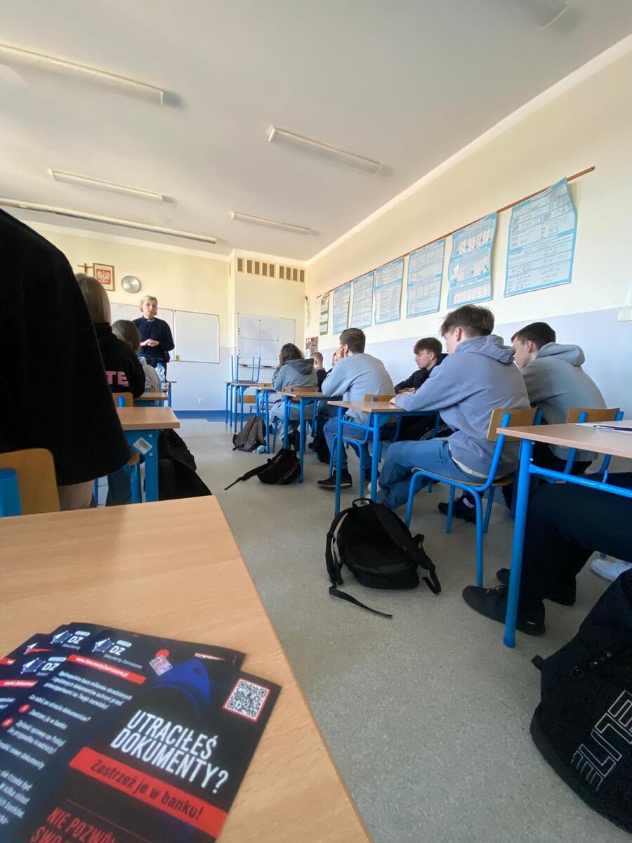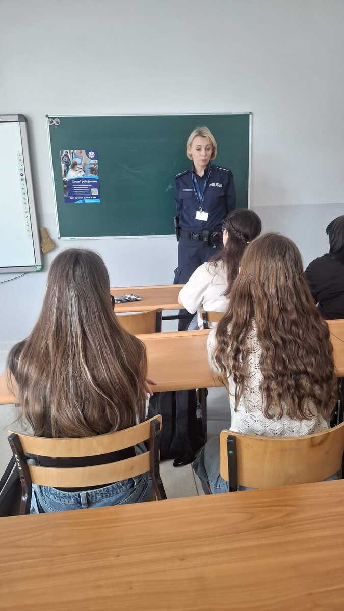 Podczas spotkań opowiedzieliśmy młodzieży o specyfice służby w Policji, codziennych zadaniach funkcjonariuszy oraz możliwościach wstąpienia w nasze szeregi. Zachęcaliśmy uczniów do rozważenia tej ścieżki zawodowej w przyszłości. W trakcie wizyt przeprowadziliśmy również działania profilaktyczne dotyczące cyberprzemocy - rozmawialiśmy o zagrożeniach w sieci oraz o tym, jak reagować w przypadku hejtu czy przemocy w internecie. Uczniowie dowiedzieli się także, jak prawidłowo postępować w sytuacji zagubienia dokumentów oraz gdzie szukać pomocy w takich przypadkach. Dziękujemy za miłe przyjęcie, aktywność podczas spotkań i wiele ciekawych pytań.