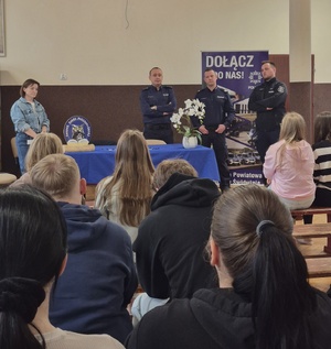Podczas spotkania rozmawialiśmy o tym, jak wygląda droga do wstąpienia w szeregi Policji, jakie wyzwania i odpowiedzialność wiążą się z tym zawodem, ale także o satysfakcji płynącej z pomagania innym i dbania o bezpieczeństwo lokalnej społeczności. Była to również okazja do zadawania pytań i poznania naszej służby „od kuchni”. W spotkaniu udział wziął nadkom. Łukasz Patyk, Komendant Komisariatu Policji w Połczynie-Zdroju, który opowiedział młodzieży o specyfice pracy policjanta oraz zachęcał do rozważenia tej drogi zawodowej. Mamy nadzieję, że wśród uczestników znalazła się choć jedna osoba, którą zainspirowaliśmy do tego, aby w przyszłości zasilić szeregi Policji.